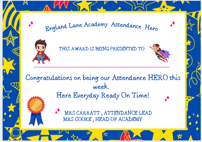 This could be because they’ve achieved 100% attendance that week, or their time in school has increased or they’ve made a special effort to come into school on time.